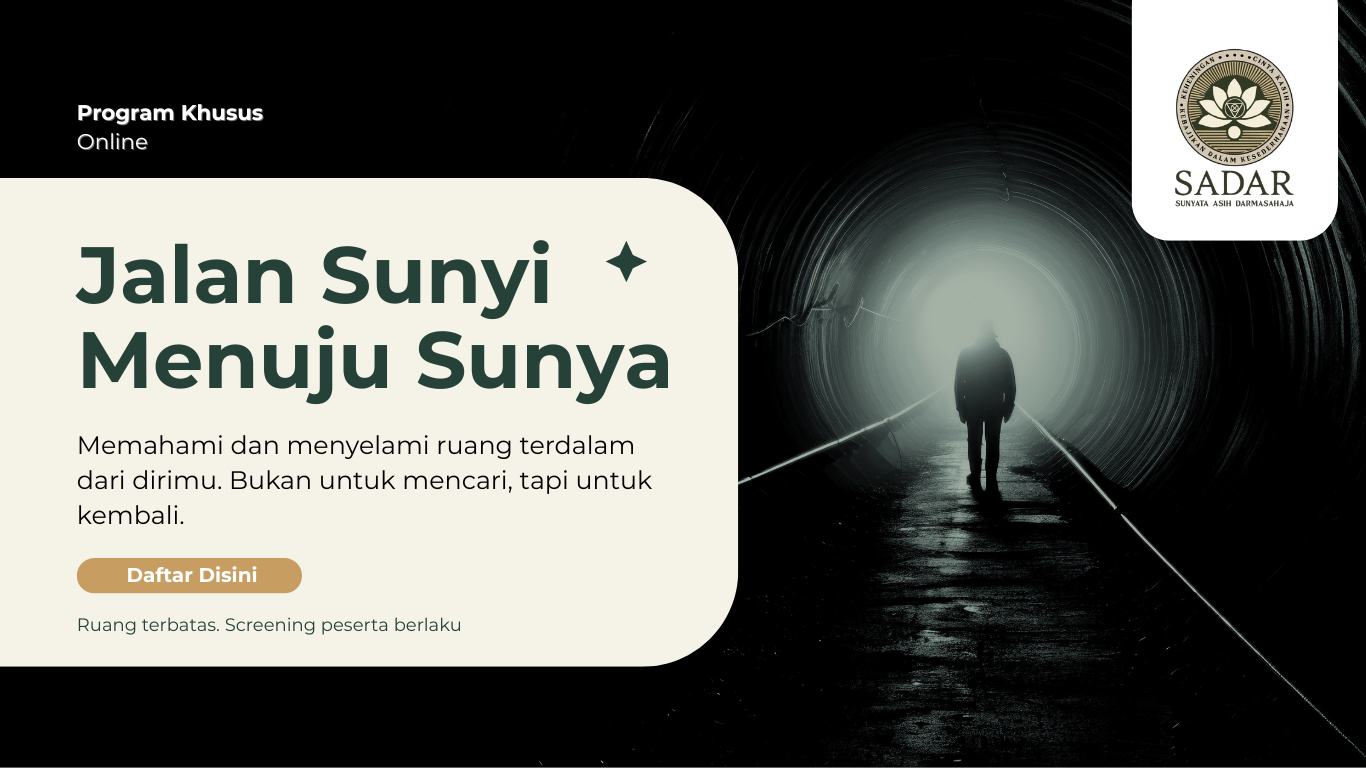 Ruang praktik kesadaran untuk menumbuhkan ketenangan, kejernihan, dan keseimbangan hidup. Setiap program di SADAR Center dirancang sebagai proses pembinaan batin yang aman, terstruktur, dan relevan untuk kehidupan sehari-hari. Peserta dapat mengikuti program sesuai kebutuhan, kesiapan, dan tahap perjalanan kesadarannya.
